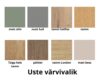 Korpus on valmistatud laminaadist, värv: valge, tamm artisan või grafiit. Uks on MDF plaadist, valikus palju värve: valge, must, tumesinine, kreem, beez, Toscana punane, mocca hall, helehall, roheline, oliiv, hall, tamm Halifax, tamm, Taiga hele tamm, pähkel, tamm London. Palun kirjutada tellimuse märkustesse, mis värvi korpust ja ust soovitakse.