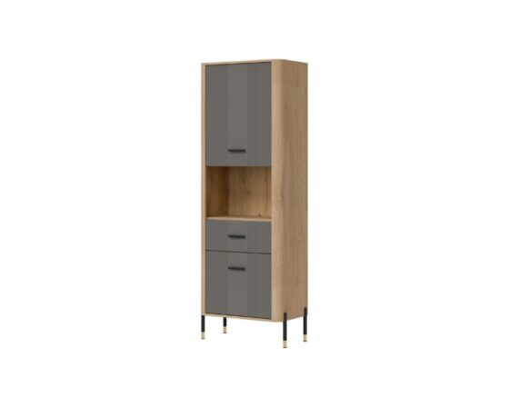 Kapp 2 ukse ja 1 sahtliga. Uksed ja sahtel on vaikselt sulguvad. Uksi saab avanema panna mõlemale poole. Toode on valmistatud kvaliteetsest ja vastupidavast lamineeritud mööbliplaadist (16mm) + MDF (18mm). Korpuse värv: tamm cremona torro. Ukse värv: matt hall. Käepidemed: kuldsed või mustad.