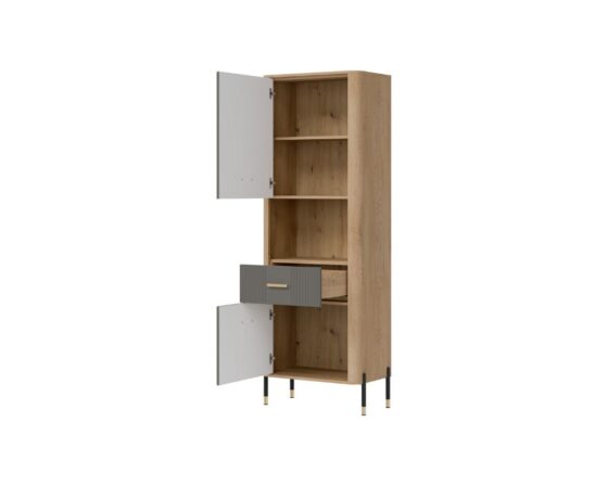 Kapp 2 ukse ja 1 sahtliga. Uksed ja sahtel on vaikselt sulguvad. Uksi saab avanema panna mõlemale poole. Toode on valmistatud kvaliteetsest ja vastupidavast lamineeritud mööbliplaadist (16mm) + MDF (18mm). Korpuse värv: tamm cremona torro. Ukse värv: matt hall. Käepidemed: kuldsed või mustad. Mõõdud: laius 70,5 cm, sügavus 40 cm, kõrgus 197 cm.