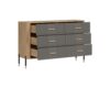 Kummut 6 sahtliga. Sahtlid on vaikselt sulguvad. Toode on valmistatud kvaliteetsest ja vastupidavast lamineeritud mööbliplaadist (16mm) + MDF (18mm). Korpuse värv: tamm cremona torro. Ukse värv: matt hall. Käepidemed: kuldsed või mustad. Mõõdud: laius 140,5 cm, sügavus 40 cm, kõrgus 88 cm.