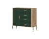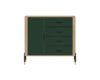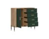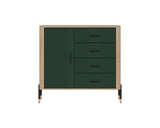 Kummut 1 ukse ja 4 sahtliga. Uks ja sahtlid on vaikselt sulguvad. Toode on valmistatud kvaliteetsest ja vastupidavast lamineeritud mööbliplaadist (16mm) + MDF (18mm). Korpuse värv: tamm cremona torro. Ukse värv: matt roheline. Käepidemed: kuldsed või mustad.