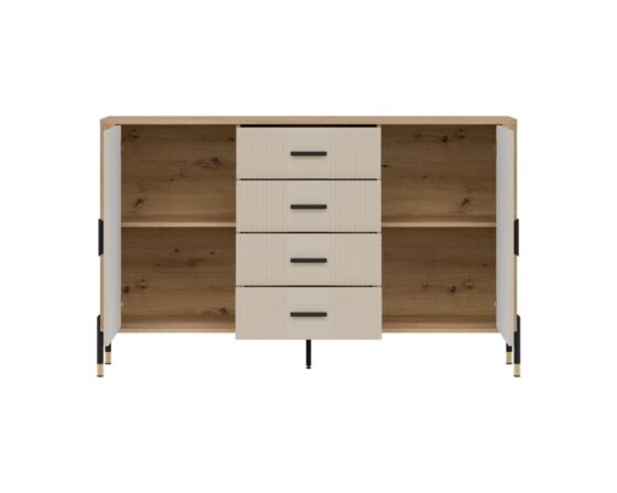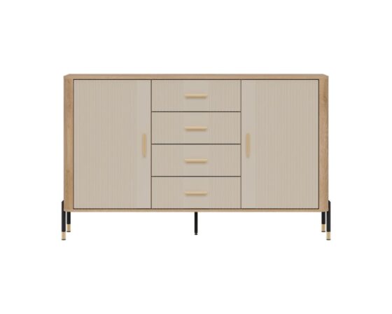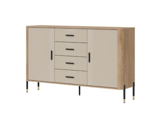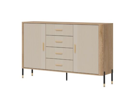 Kummut 2 ukse ja sahtliga. Uksed ja sahtlid on vaikselt sulguvad. Toode on valmistatud kvaliteetsest ja vastupidavast lamineeritud mööbliplaadist (16mm) + MDF (18mm). Korpuse värv: tamm cremona torro. Ukse värv: matt kašmiir. Käepidemed: kuldsed või mustad. Mõõdud: laius 164,5 cm, sügavus 40 cm, kõrgus 100 cm.