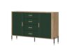 Kummut 2 ukse ja 4 sahtliga. Uksed ja sahtlid on vaikselt sulguvad. Toode on valmistatud kvaliteetsest ja vastupidavast lamineeritud mööbliplaadist (16mm) + MDF (18mm). Korpuse värv: tamm cremona torro. Ukse värv: matt roheline. Käepidemed: kuldsed või mustad. Mõõdud: laius 164,5 cm, sügavus 40 cm, kõrgus 100 cm.