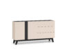 Kummut 2 ukse ja 3 sahtliga. Uksed on vaikselt sulguvad. Toode on valmistatud kvaliteetsest ja vastupidavast lamineeritud mööbliplaadist, servad kanditud ABS plastikuga. Värv: kašmiir/matt must. Mõõdud: laius 160cm, sügavus 40cm, kõrgus 85cm.