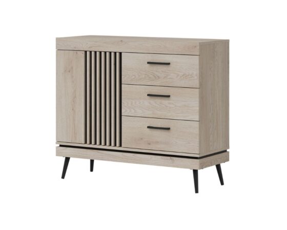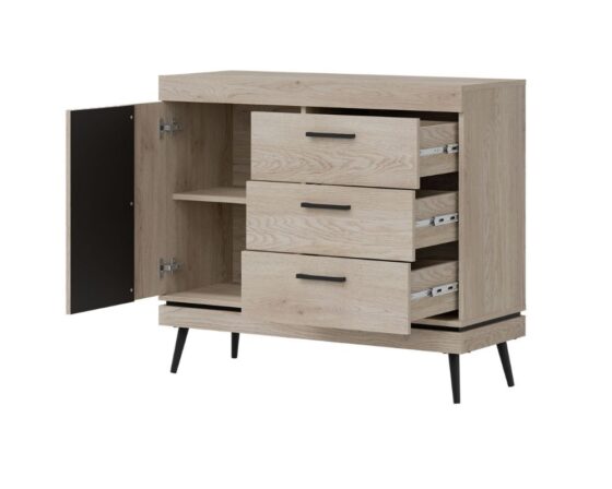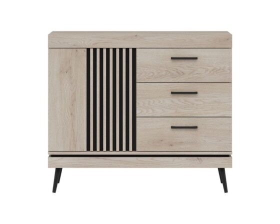 Kummut 1 ukse ja 3 sahtliga. Uks on vaikselt sulguv. Sahtlid on täispikendatavad. Toode on valmistatud kvaliteetsest ja vastupidavast lamineeritud mööbliplaadist (16mm) + MDF. Värv: tamm cremona cotta/ must. Jalad ja käepidemed: plastikust.