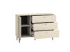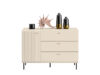 Kummut 1 ukse ja 3 sahtliga. Toode on valmistatud kvaliteetsest lamineeritud mööbliplaadist + MDF. Värv: kašmiir. Jalad: metallist, musta värvi, h=15cm. Käepidemed: metallist, kuldset värvi.