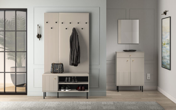 Nagi seinale. Toode on valmistatud kvaliteetsest lamineeritud mööbliplaadist. Värv: kašmiir. Mõõdud: laius 34cm, sügavus 2cm, kõrgus 137cm.