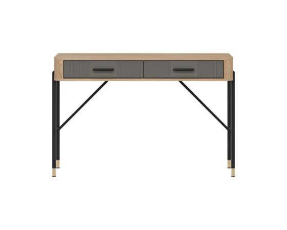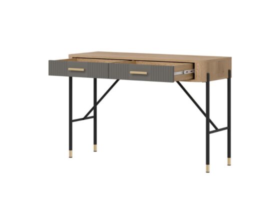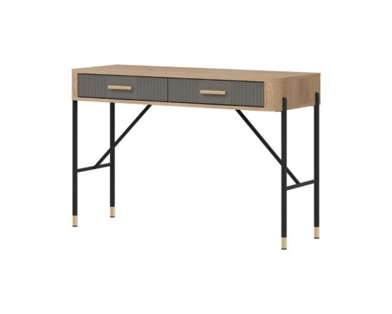 Tualettlaud 2 sahtliga. Sahtlid on vaikselt sulguvad. Toode on valmistatud kvaliteetsest ja vastupidavast lamineeritud mööbliplaadist (16mm) + MDF (18mm). Korpuse värv: tamm cremona torro. Sahtli esipaneeli värv: matt hall. Käepidemed: kuldsed või mustad. Mõõdud: laius 120 cm, sügavus 44 cm, kõrgus 78 cm.