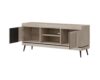 TV-laud 2 uksega. Uksed on vaikselt sulguvad. Toode on valmistatud kvaliteetsest ja vastupidavast lamineeritud mööbliplaadist (16mm) + MDF. Värv: tamm cremona cotta/ must. Jalad ja käepidemed: plastikust. Mõõdud: laius 155 cm, sügavus 40 cm, kõrgus 66 cm.