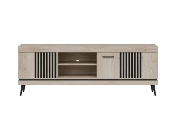TV-laud 3 uksega. Uksed on vaikselt sulguvad. Toode on valmistatud kvaliteetsest ja vastupidavast lamineeritud mööbliplaadist (16mm) + MDF. Värv: tamm cremona cotta/ must. Jalad ja käepidemed: plastikust. Mõõdud: laius 183 cm, sügavus 40 cm, kõrgus 66 cm.