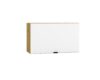 Ülemine madal 60cm laiune kapp üles avaneva uksega. Korpuse värv: tamm artisan. Ukse värv: matt valge. Materjal: lamineeritud mööbliplaat, 16mm. Käepide: minimalistlik, plastikust.