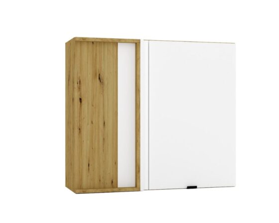 Ülemine nurgakapp 1 uksega. Kappi saab kokku panna mõlematpidi. Korpuse värv: tamm artisan. Ukse värv: matt valge. Materjal: lamineeritud mööbliplaat, 16mm. Käepide: minimalistlik, plastikust.
